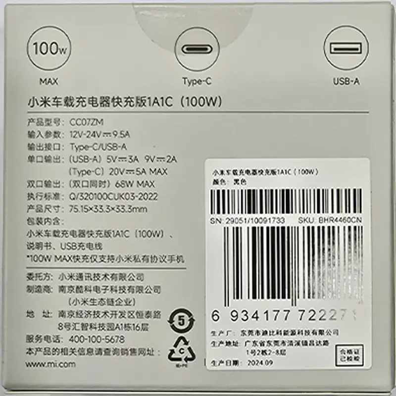 | مدل | Xiaomi Car Charger CC07ZM 1A1C |